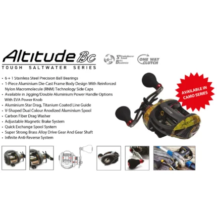 • Forged and machined aluminum spool, sideplates, and one piece handle arm